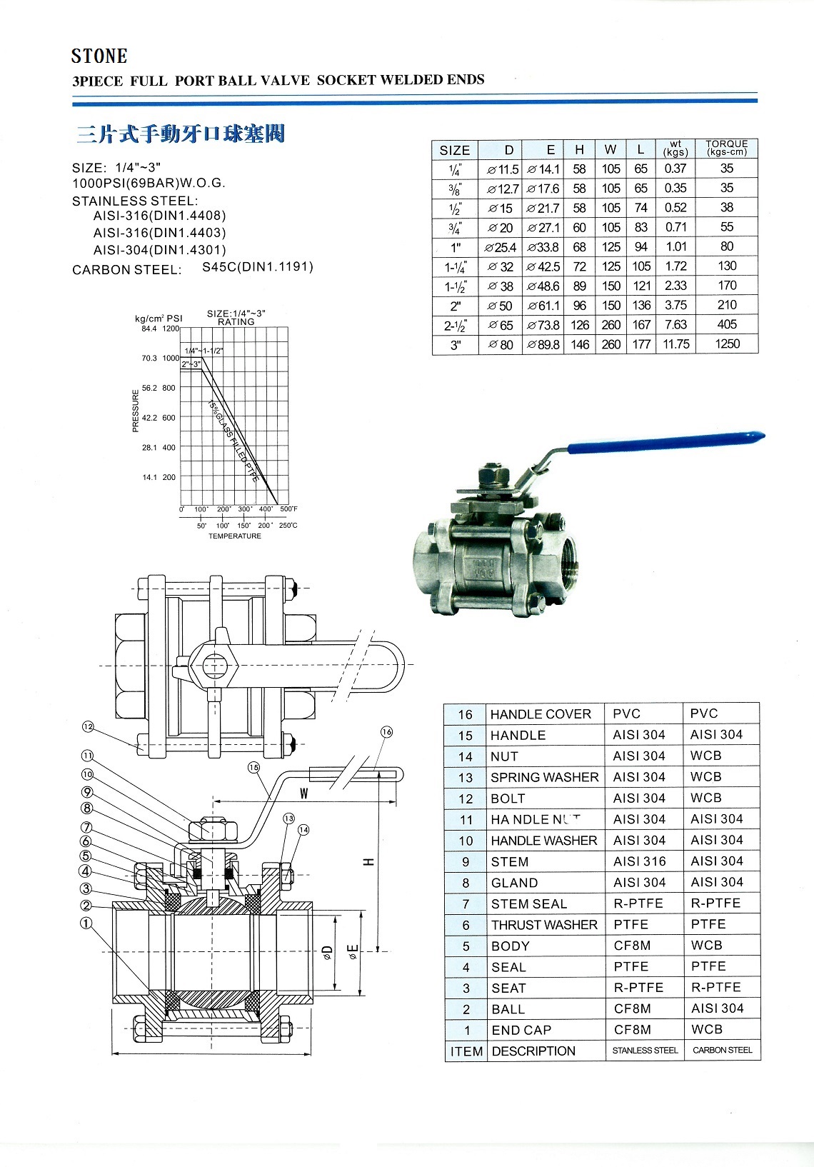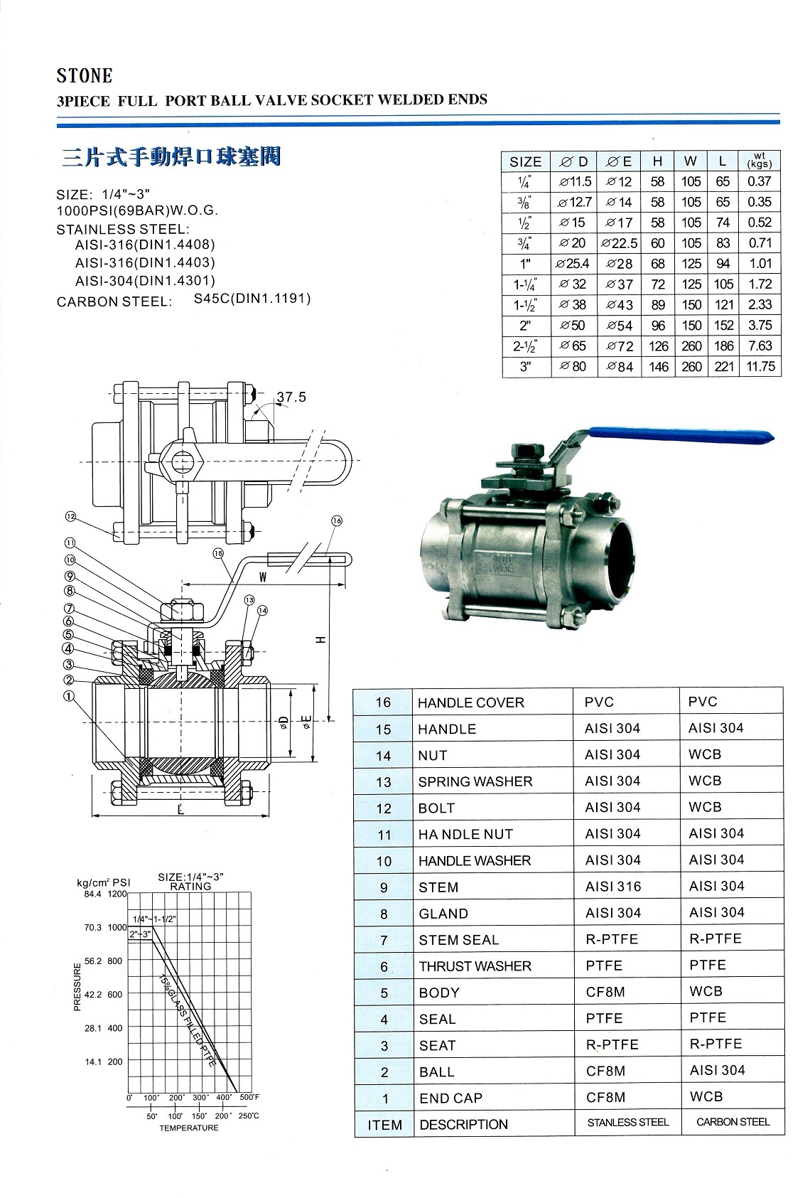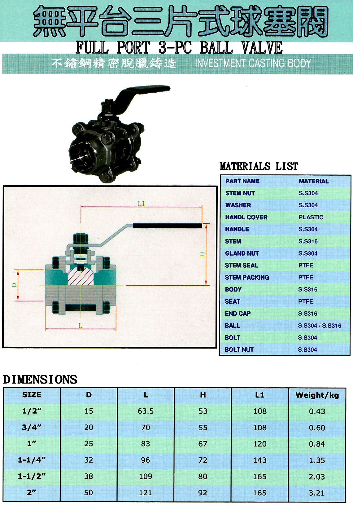 316三片式球塞(牙口 套焊 焊口)