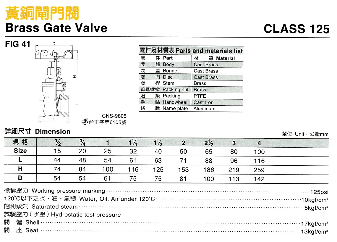 41 黃銅閘門閥