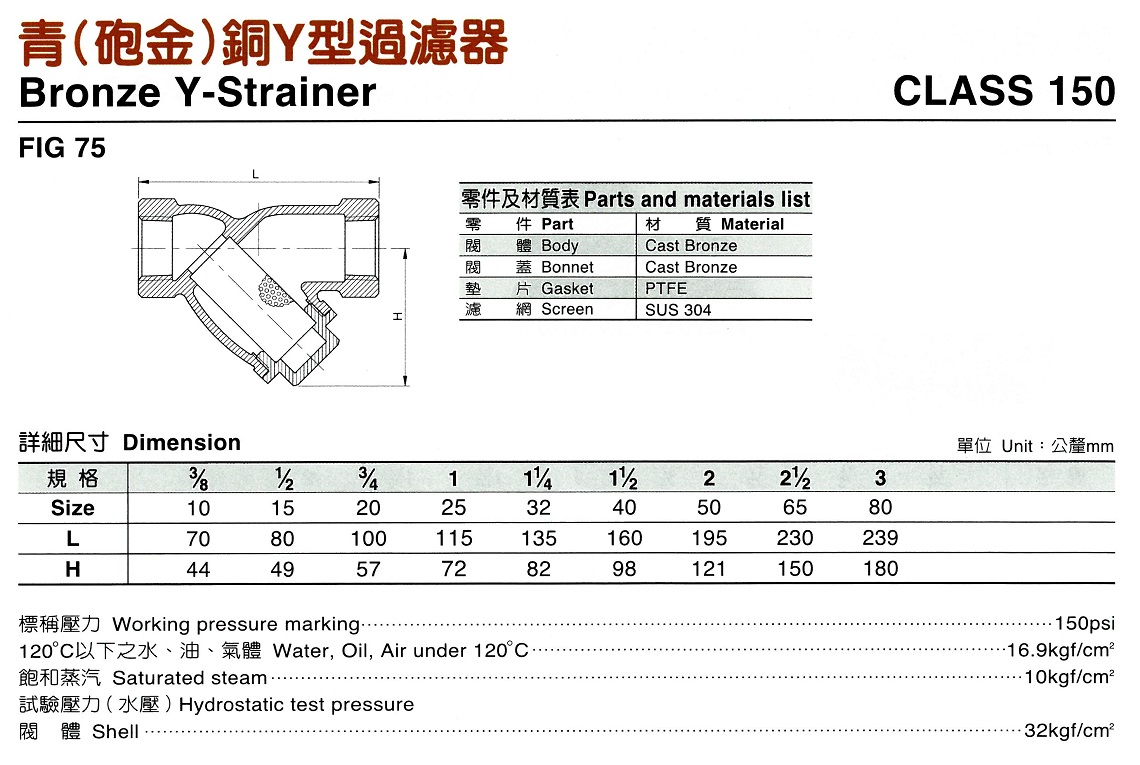 75 青銅Y型過濾器