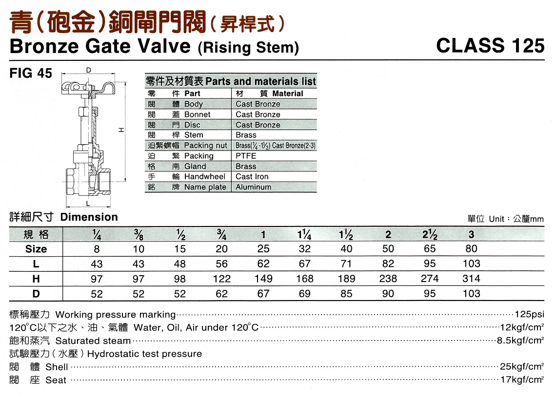 45 青銅閘閥昇桿式