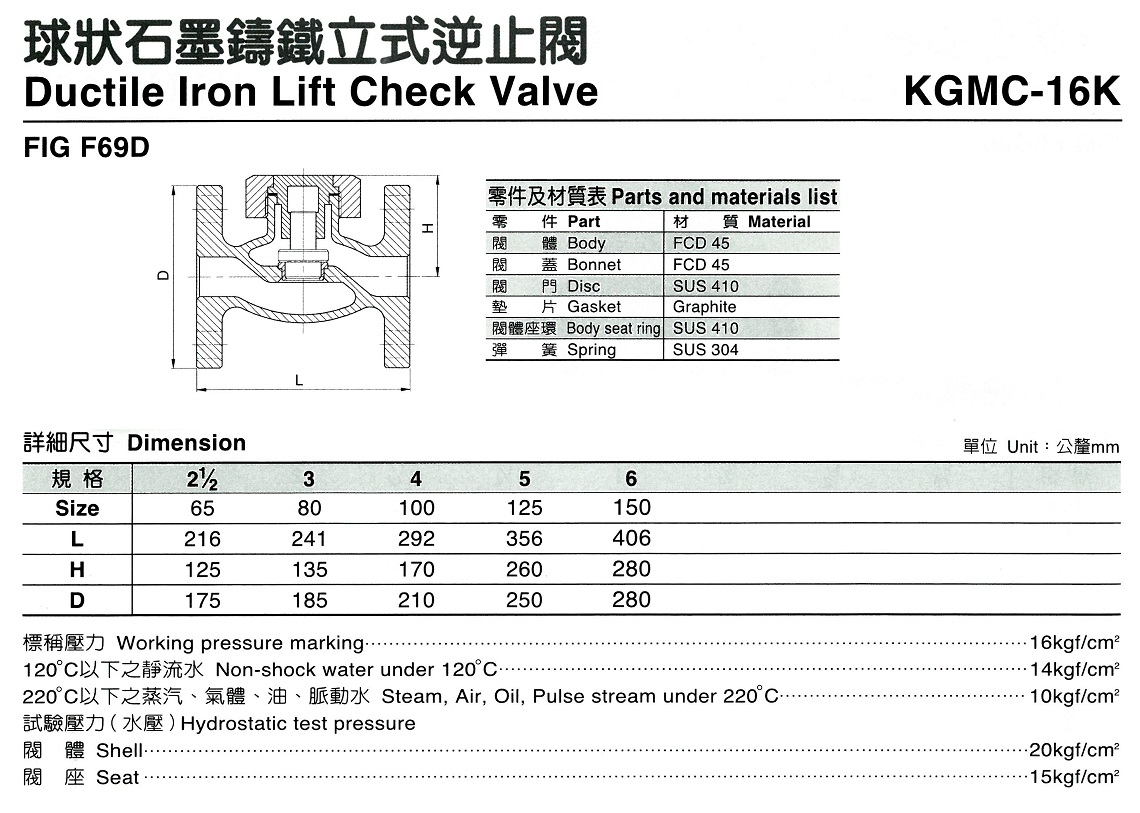 F69D-16K石墨立式逆止閥