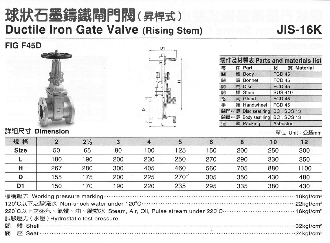 F45D 球狀石墨鑄鐵閘門閥(昇桿式)
