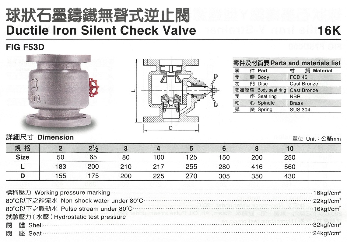 F58D 球狀石墨鑄鐵無聲式逆止閥16K