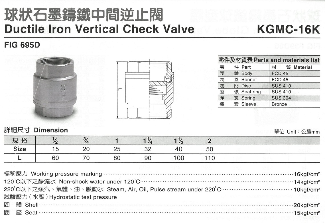 F53D 球狀石墨鑄鐵橫式逆止閥