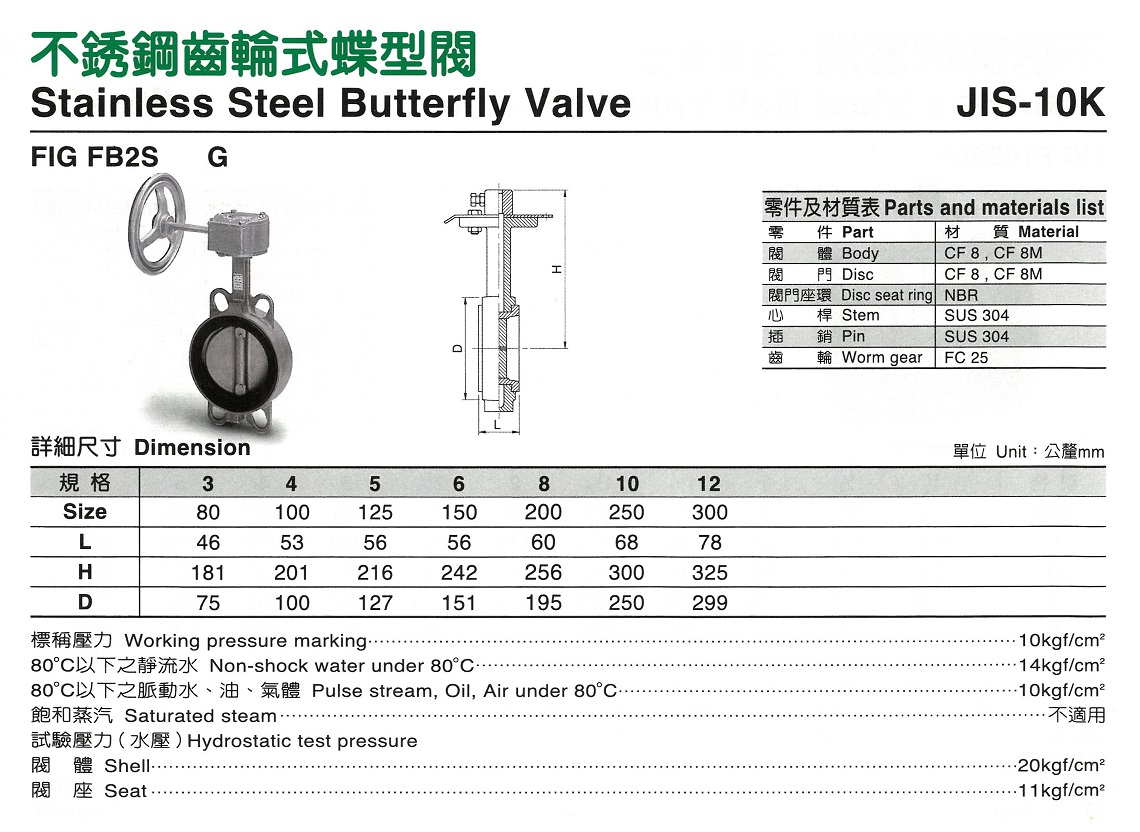 不鏽鋼齒輪式蝶型閥 FB2S-G