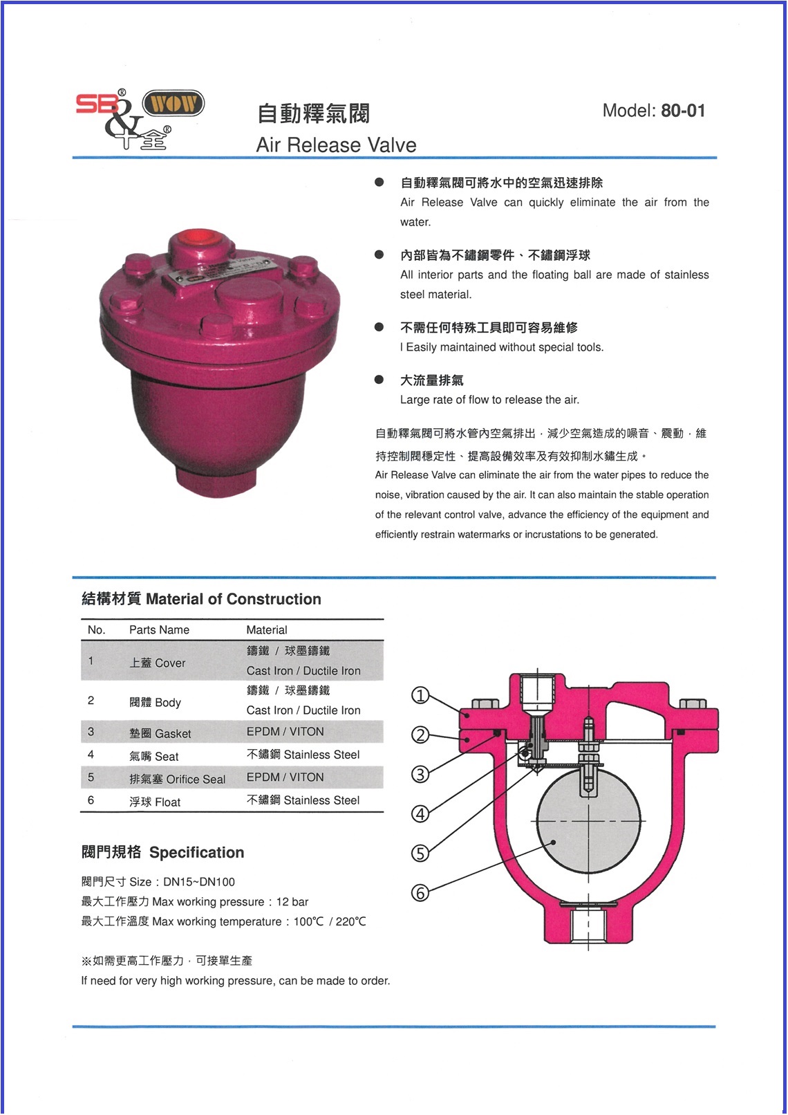 SB 十全 鑄鐵自動排氣閥