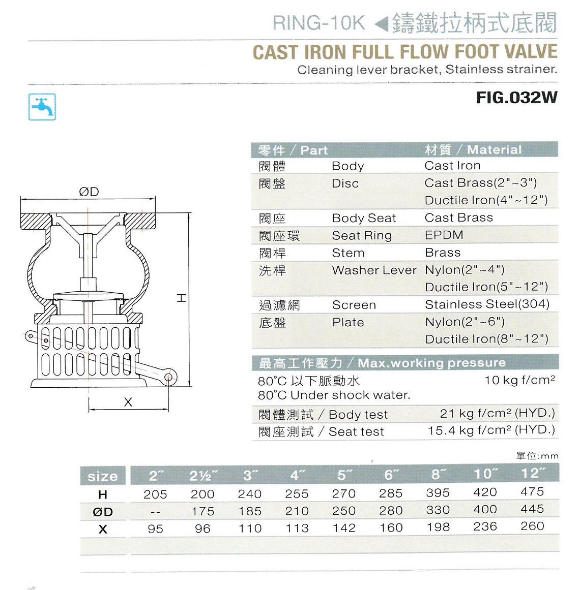 032W 鑄鐵拉柄式底閥