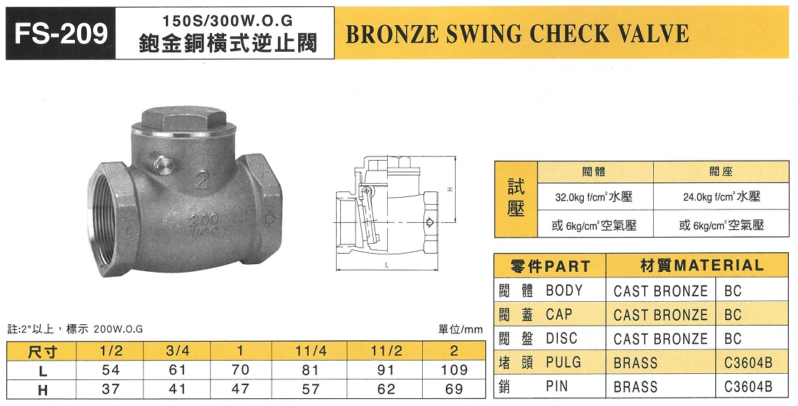 鉋金銅橫式逆止閥 150S