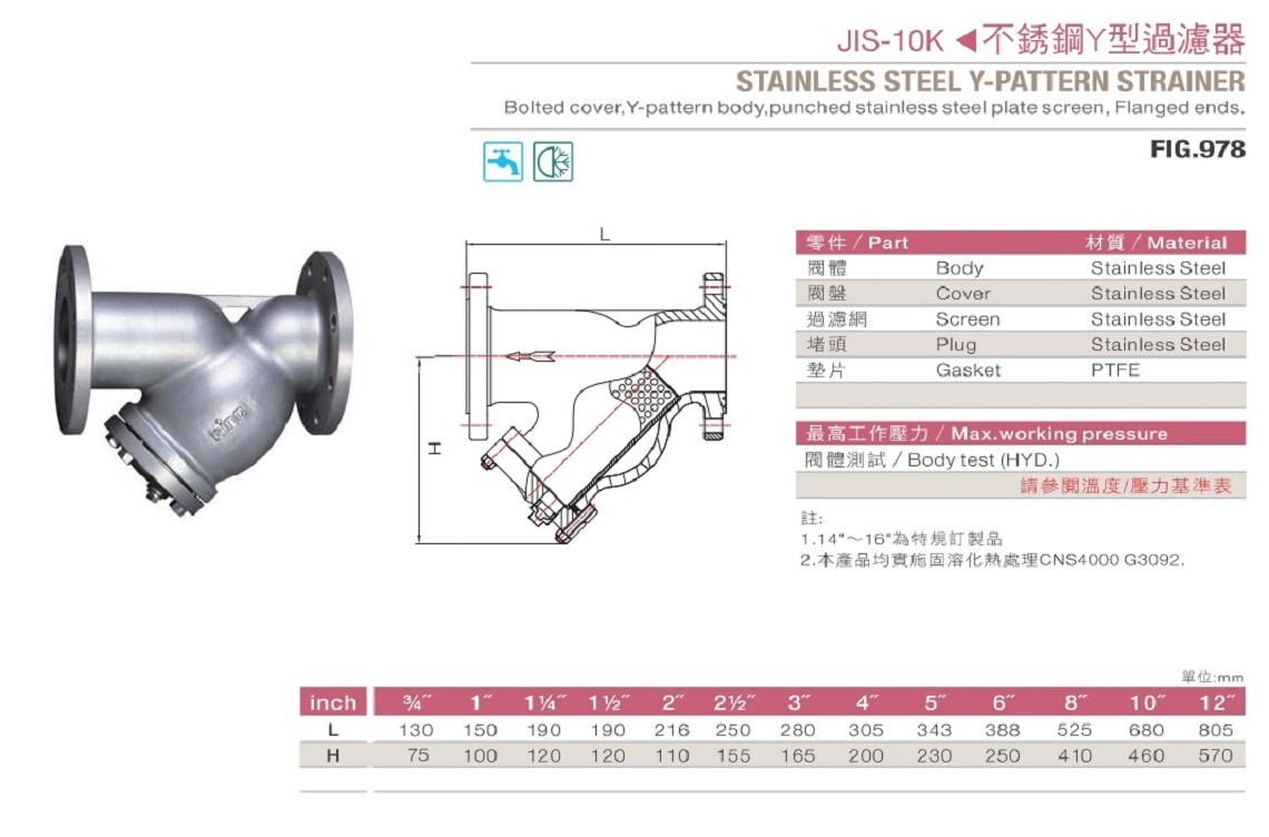978 不鏽鋼Y型過濾器 法蘭口