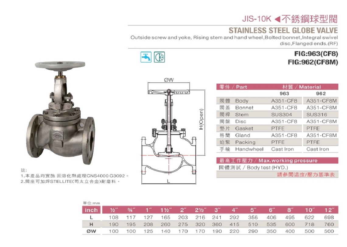 963 962 不鏽鋼球型閥 10K